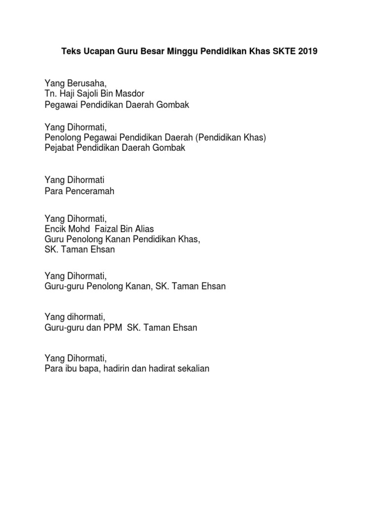 Teks Ucapan Perasmi Karnival Kemahiran Pendidikan Khas Daerah Klang 2017 Pdf